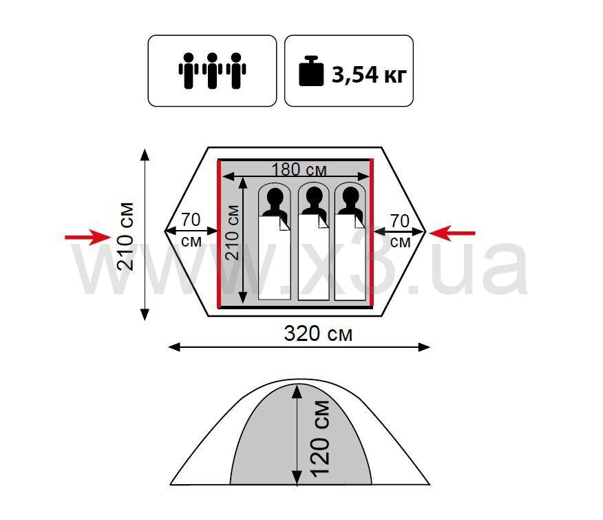 Тент: 100% полиестер 75D/190T WR PU 4000 мм. в. ст.