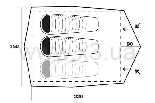 Модель для 2-3 человек, с традиционной конструкцией и оптимальной длиной для большего комфорта пользователя. Тамбур обеспечивает пространство для хранения багажа. Преимуществом палатки является небольшой вес и быстрая установка.