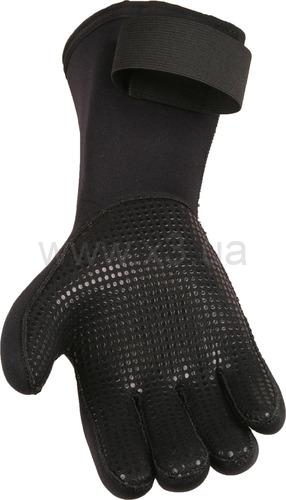 Пятипалые перчатки анатомического кроя из неопрена толщиной 5 мм с внутренним титановым напылением и с наружным полеуретановым антипроскальзывающим покрытием. Удобная удлинённая манжета с дополнительной фиксацией застёжкой - липучкой. На ладони нанесено полиуретановое антифрикционное покрытие. Внутреннее напылением слоя титана повышает теплоизолирующие свойства.