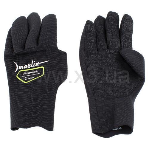 Перчатки Marlin Ultrastretch (Марлин Ультрастреч) сделаны из эластичного неопрена фирмы Шейко, покрытого сверхрастяжимым нейлоном ultrastretch. Анатомический крой обеспечивает плотное, но комфортное обжимание кисти, сохраняя её чувствительность при эксплуатации, предотвращая при этом циркуляцию воды и сберегая тепло. Нейлон внутри даёт возможность надевать перчатку на сухую кисть (без мыльного раствора). Прорезиненная поверхность ладоней позволяет уверенно удерживать предметы в воде.