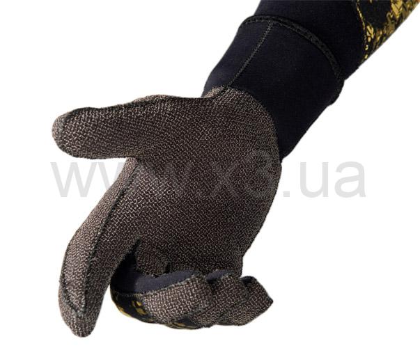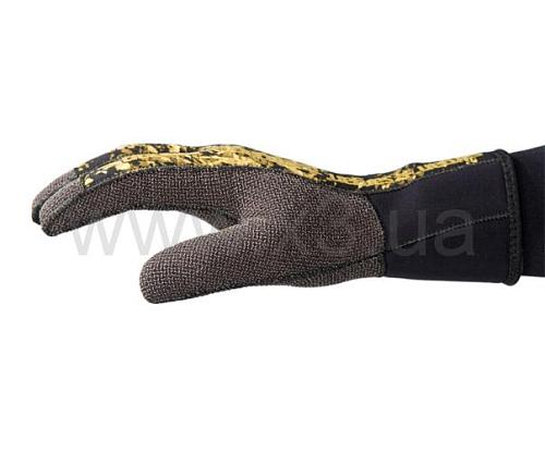 Верх перчаток выполнен из камуфлированного неопрена с повышенной устойчивостью к сжатию, что сохраняет теплосберегающие свойства неопрена при погружениях даже на значительные глубины.