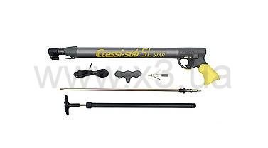 Прочный крючок для крепления линя расположен на заднем зацепе гарпуна (хвостовике). Ружье имеет предохранитель, блокирующий перемещение спускового крючка и активизирующий линесбрасыватель.