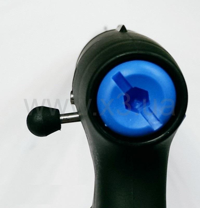 На передней части эргономичной рукоятки цвета Cyrano Blue предусмотрены анти-скользящие ребра с высоким коэффициентом трения боковых поверхностей. Так же присутствует ребристость на мягкой накладке на задней части рукояти и вогнутость для комфортного размещения большого пальца. Стоит отметить, что рукоятка удобна в использовании, как для левшей, так и для правшей.