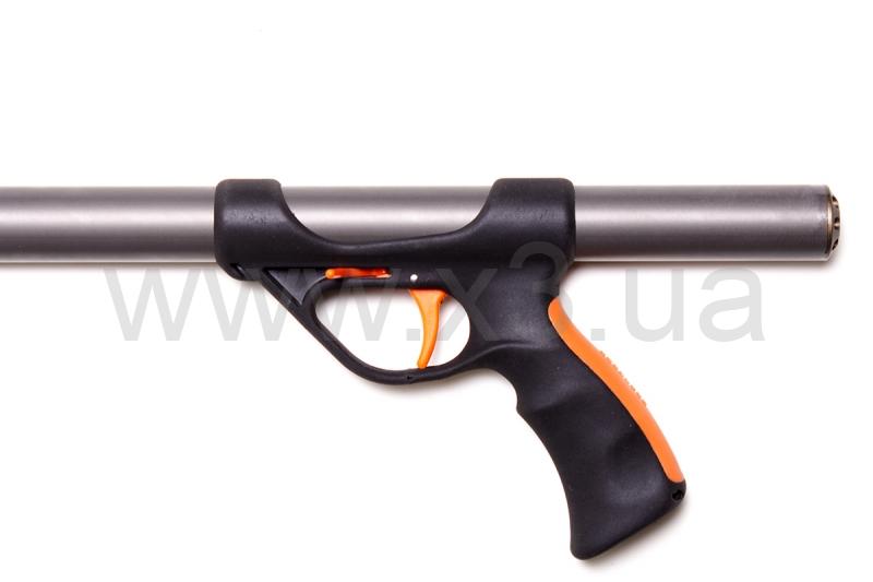 Рукоять выполнена из прорезиненного материала, имеет универсальный хват. Задняя часть окрашена в ярко-оранжевый цвет, что облегчает поиск ружья в воде.
