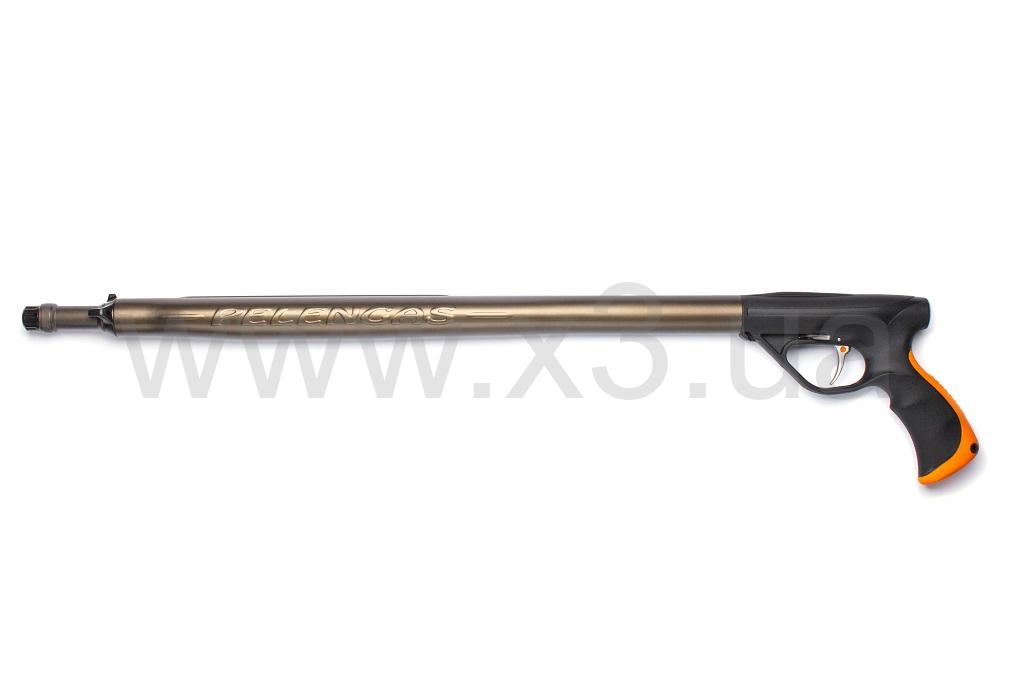 Рукоять выполнена из прорезиненного материала, имеет универсальный хват. Задняя часть окрашена в ярко-оранжевый цвет, что облегчает поиск ружья в воде.