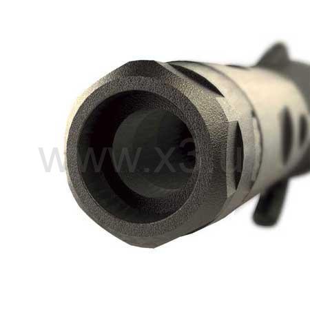 Кожух ствола цилиндрической формы, из алюминиевого сплава, ø 40 мм. Благодаря структуре и использованию новейших материалов при изготовлении, полностью отсутствуют проблемы перекоса и заклинивания стрелы. Этих проблем удалось избежать также благодаря идеальной коаксиальности стрелы по отношению к поршневой группе (то есть благодаря идеальной выравненности осей).