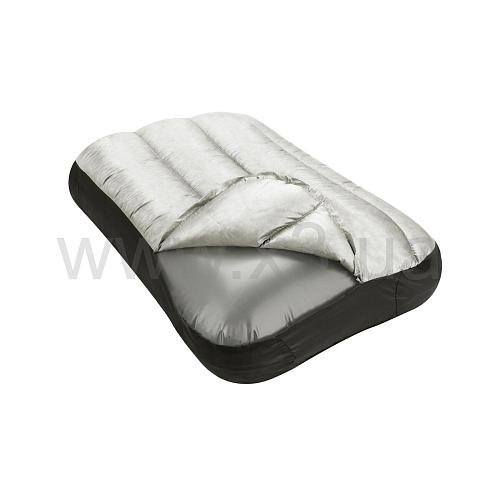 Благодаря горизонтальной прострочке предотвращается смещение пуха вниз, даже когда воздушная камера накачана до предела. Верхняя часть пуховой подушки заходит на переднюю часть для комфорта шеи. Остальная часть наволочки сделана из легкой 20D ткани.
