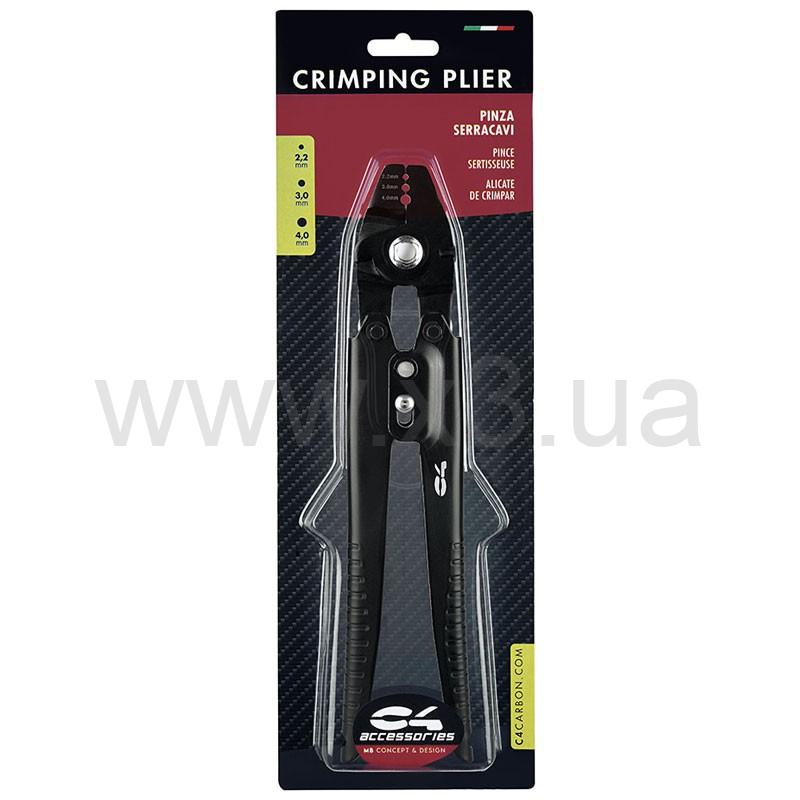 Плоскогубцы для затягивания кабеля С4 являются полезным аксессуаром для затягивания гильз на мононити линий подводных винтовок, специально разработанных и изготовленных компанией С4 для затягивания одиночных алюминиевых втулок или телескопа, в наиболее используемых размерах в подводной рыбалке. Отверстия на головке суппорта составляют 2,2 мм, 3,0 мм и 4,0 мм.