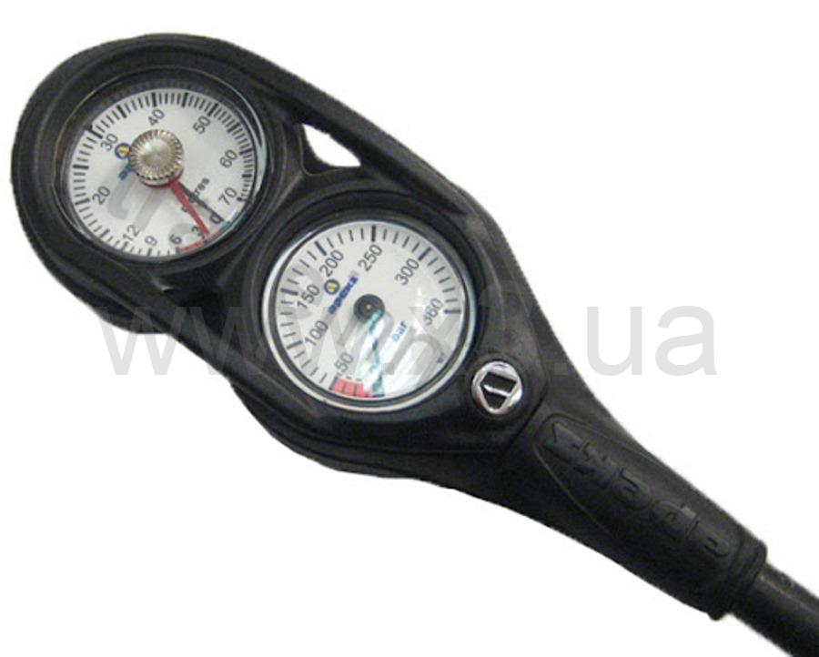 Новая консоль манометр + глубиномер от компании Apeks. Данная модель отличается своим дизайном, простым и в то же время очень удобным для пользования. Консоль не занимает много места, что положительно влияет на удобство при погружении, а так же при перевозке. Циферблаты имеют длительный эффект фосфоресцирующие для более удобного чтения в условиях плохой видимости. Глубиномер рассчитан на глубину в 70 метров, а манометр в давление 360 атмосфер.