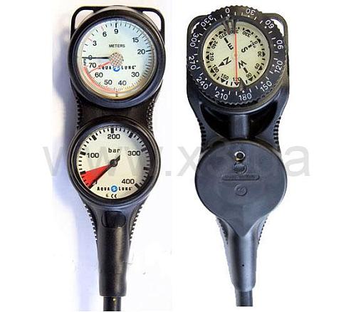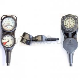 Трехприборная консоль включает в себя: манометр до 400 bar, глубиномер до 70 метров, компас.