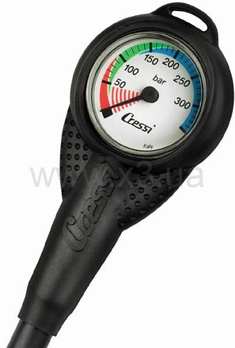 Мини-манометр компании Cressi – это новый прибор для измерения давления, маленький по размеру, минимального веса, специально разработанный, чтобы избежать чрезмерной нагрузки на шланг высокого давления, который соединяется с первой ступенью регулятора. Этот прибор имеет металлический корпус, изготовленный из хромированной меди, поэтому он очень прочен. Переднее стекло сделано так, чтобы использоваться в качестве предохранительного клапана. Если внутри прибора внезапно наблюдается подъем давления, стекло немного поднимается, позволяя выйти избыточному давлению.