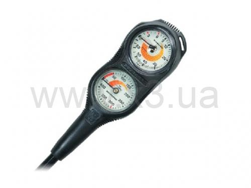 Объединяет манометр и глубиномер. Манометр до 400 бар. Адаптируется для 200 и 300 бар. Красная зона от 0 до 50 бар для повышения безопасности.