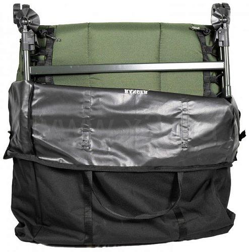 Мощная конструкция карповой раскладушки рассчитана на большую нагрузку.
