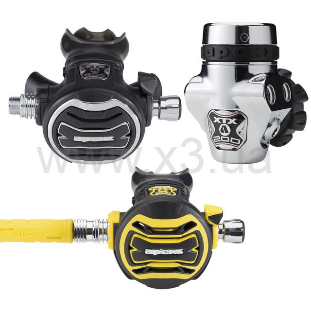 Набор Apeks состоит из регулятора для дайвинга Apeks XTX 200 и октопуса XTX 50 DIN. Регулятор оборудован передней крышкой повышенной прочности.