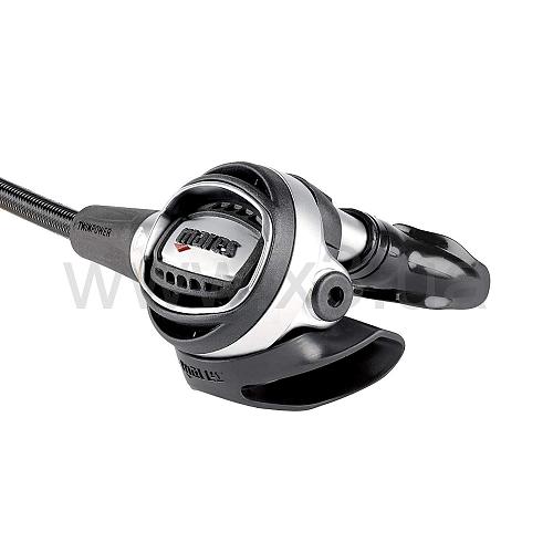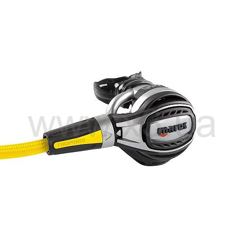 Регулятор Fusion 52X TWINPOWER, производитель MARES (Италия) TWINPOWER: вторая ступень регулятора Fusion оборудована системой регулирования подачи воздуха, встроенной в механизм крепления шланга к корпусу второй ступени. Конструктивно эта система выполнена аналогично акселератору мотоциклетного двигателя и имеет два рабочих положения, VAD и VAD+. В положении VAD регулятор подает воздух в очень ровном, неотличимом от нормального дыхания объеме и темпе. Положение VAD+ предугадывает потенциальную возможность роста потребления воздуха и подает его дайверу под несколько избыточным давлением. Разница между двумя режимами сильнее ощущается на глубине, чем на поверхности. Это объясняется возрастанием плотности воздуха с увеличением давления и влиянием изменяющихся характеристик газа на эффект Вентури. В любом режиме подачи регулятор соответствует стандартам EN250:2014. Эта уникальная особенность регуляторов Mares позволяет регулировать объём подачи без изменения усилия подрыва. Практически это подобно двум регуляторам в одном. Дайверы, предпочитающие обычное, естественное дыхание, смогут погружаться в режиме VAD. Те же, кому комфортнее получать воздух без малейшего усилия, получат эту возможность, установив режим VAD+. ПРИМЕЧАНИЕ: Поскольку режим VAD+ обеспечивает очень высокий объём подачи воздуха, Mares рекомендует до ухода под воду оставлять регулятор в режиме VAD. Нажатие кнопки продувки на поверхности в режиме VAD вызывает короткий выброс воздуха, то же действие в режиме VAD+ приведет к неконтролируемой подаче воздуха (фри-флоу). Увеличенная подача воздуха в режиме VAD+ не является оптимальной при холодноводных погружениях (температура 10ºС и ниже), поэтому Mares рекомендует в этой ситуации использовать режим VAD. При том, что подача воздуха регулируется выбором одного из двух заданных режимов, случайная остановка переключателя в среднем положении не приведет к остановке подачи. Дайвер будет получать достаточно воздуха при любом положении переключателя.