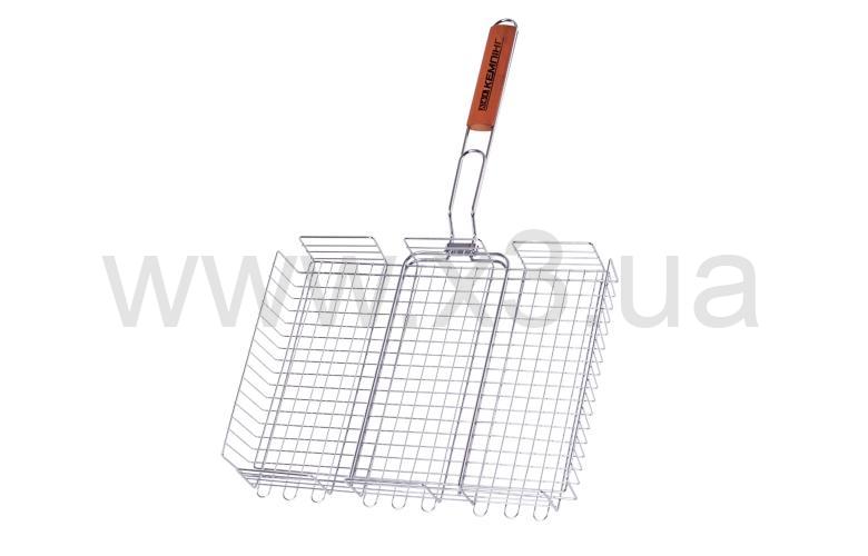 Хромированная решетка из нержавеющей стали с длинной ручкой для запекания мяса, птицы, рыбы и овощей.
