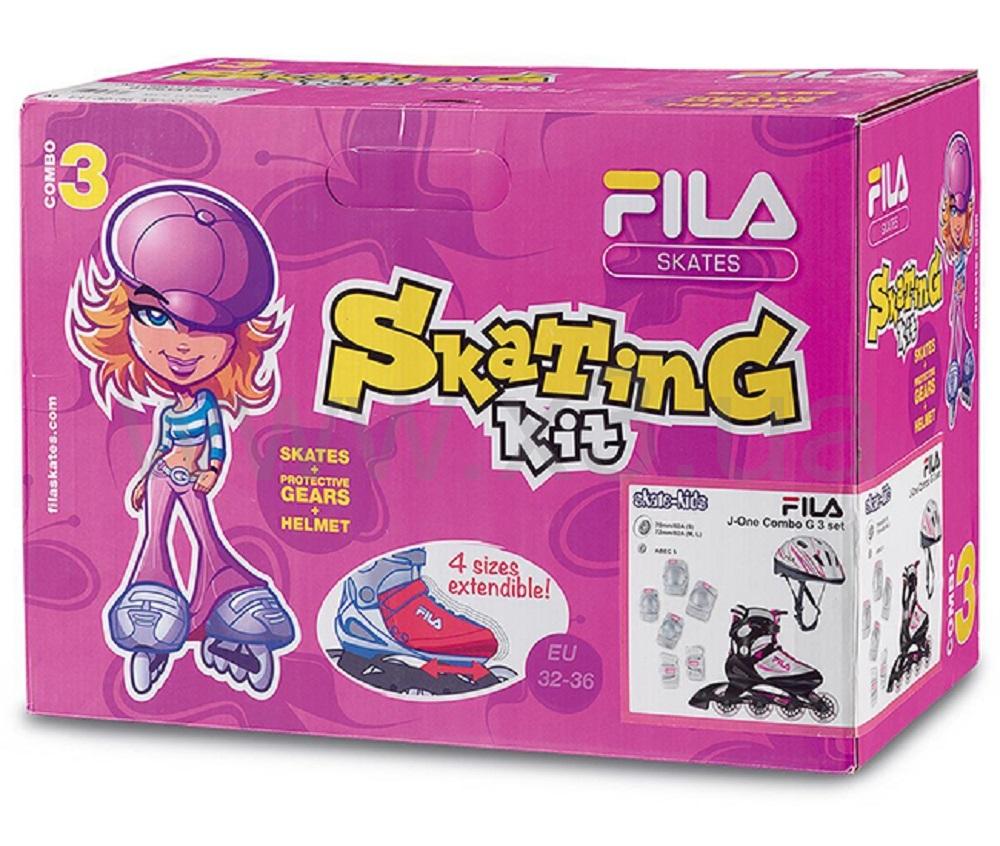 Fila J-one Combo 3 set – набор из одних из лучших раздвижных детских роликов и полного комплекта защитной экипировки от итальянского бренда Фила. Этот набор сделает катание Вашего ребенка не только веселым, но и безопасным.
