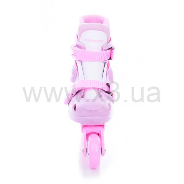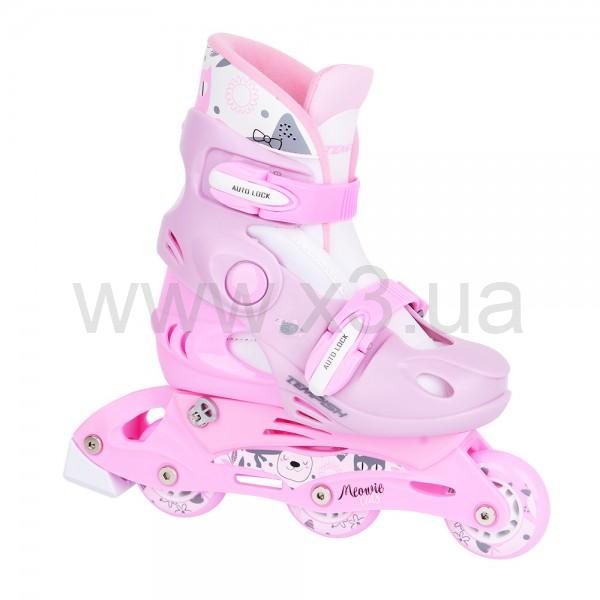 Tempish Kitty Baby Skate - набор, предназначенный для начинающих роллеров, хороший выбор для первых роликов. Дизайн модели выполнен в нежных бело-розовых тонах. Простая система регулировки размеров позволяет изменять размер в пределах 4-х доступных вариантов с большим количеством шагов (есть возможность устанавливать половинки и четвертинки размеров). Съемный внутренний лайнер обеспечивает хорошую вентиляцию и позволяет быстро просушить ботинок после катания. Фиксацию ноги в ролике обеспечивают две бакли с защелкой autolock, что гарантирует надежную фиксацию во время катания.