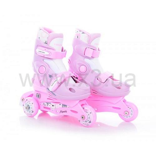 Ролики Kitty Baby Skate сделаны специально для новичков, поэтому в комплект входит набор для перестановки двух задних колес на одну ось для повышения устойчивости на первых этапах катания.