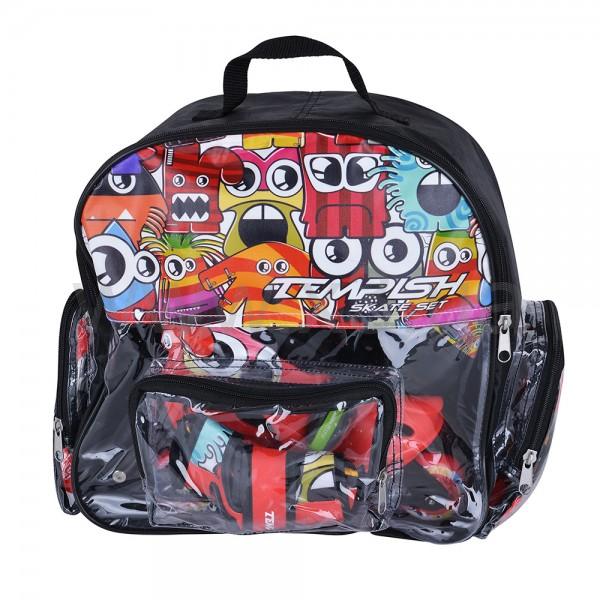 Роликовые коньки Tempish Monster Baby Skate - раздвижные детские роликовые коньки для мальчиков. Отличный комплект для Вашего ребенка, включающий в себя роликовые коньки, сумочку, наколенники, налокотники, накладки на запястья, шлем и систему для перестановки двух задних колес на одну ось с необходимыми инструментами.