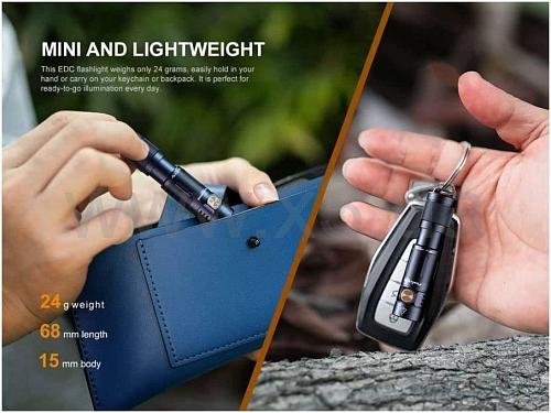 Он может достигать до 400 люмен от встроенной литий-полимерной батареи емкостью 320 мАч и дальности действия 64 метра. Фонарик полностью перезаряжается через встроенный и скрытый порт зарядки USB Type-C и имеет максимальное время работы 30 часов.