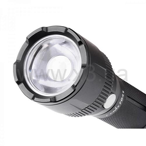 Фонарь Fenix FD41 дополнил молодую линейку бренда Fenix, которая представлена моделями с выдвижной линзой. Эта особенность позволяет вручную регулировать расстояние, на котором фонарь будет освещать объекты, и угол луча. Таким образом, пользователь получает в одном приборе и яркий дальнобойный фонарь, и модуль с заливным освещением, комфортным для восприятия предметов на ближнем расстоянии. Эта функция в модели Fenix FD41 реализована за счет поворотного кольца, размещенного в головной части. Кольцо вращается на 360°, перемещая переднюю линзу. Максимальная ширина луча для этой модели составляет 81°. Если же нужно, наоборот, рассмотреть территорию вдали, то достаточно передвинуть линзу в другое крайнее положение и получить четко сфокусированный луч, длина которого достигает 340 метров.