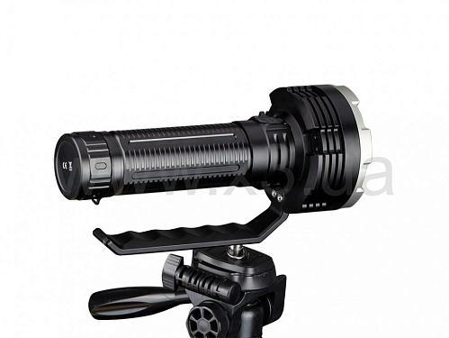 Здесь используются шесть светодиодов Luminus SST70 со сроком эксплуатации до 50 тысяч часов. Заряжается модель через USB Type-C, что даёт возможность довольно быстро, за четыре часа, зарядить аккумулятор. Доступны две группы режимов свечения фонаря, и управляются они двумя переключателями. Для переноски Fenix LR80R предусмотрена комфортная съёмная ручка. А чтобы не было перегрева при таком световом потоке, в модели доступна функция сокращения яркости при работе на близких дистанциях.