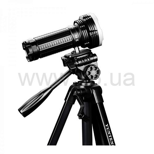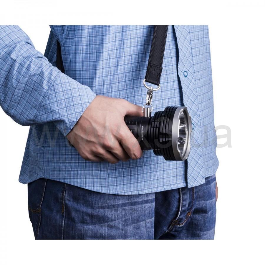 Корпус обновленного фонаря Fenix TK75 2018 сделан из алюминия, что дает ему высокий уровень механической защиты. Он также непроницаем для воды и для пыли согласно стандарту IPX-8. Весит фонарь 630 грамм, не учитывая вес аккумуляторов. Чтобы его было легче носить и удобнее использовать, в комплекте имеется плечевой ремень. Модель Fenix TK75 2018 также можно установить на штатив, для чего на корпусе имеется соответствующий разъем.