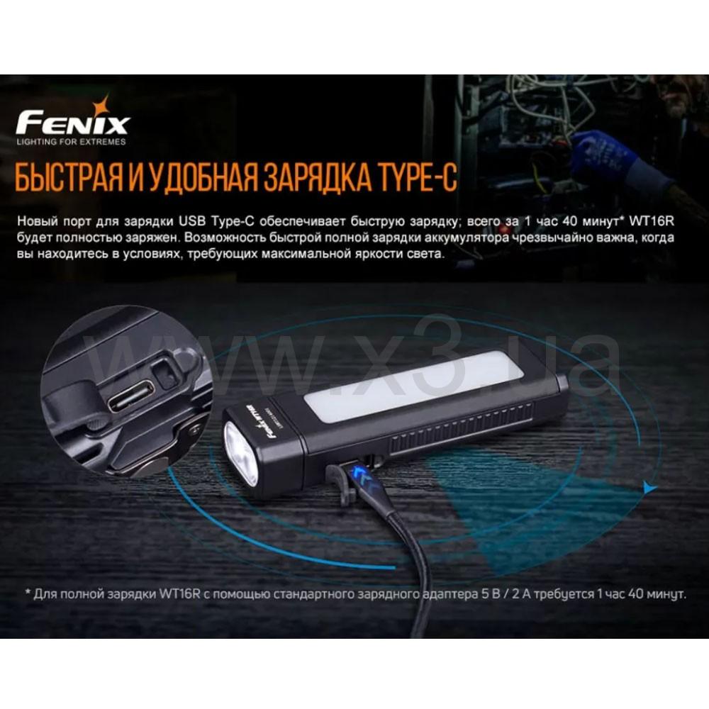 Комплектация: Фонарь Fenix WT16R, кабель для зарядки USB Type-C, ремешок на руку, инструкция, гарантийный талон.
