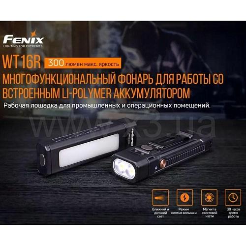 Корпус изготовлен с применением крепкого и надёжного пластика хорошего качества. Падая с высоты полутора метров, фонарь остаётся неповреждённым и в рабочем состоянии. Экстремально высокие и низкие температуры его также не выведут из строя. Fenix WT16R может функционировать при морозе в 35 градусов и при жаре в 45 градусов. Он эффективно показывает себя в различных условиях, поэтому его оптимально использовать в туризме и активном отдыхе. Он хорошо защищён от проникновения влаги, пыли по стандарту IP66. Может нормально работать под сильным дождём, попадание брызг на корпус также не страшно фонарю.