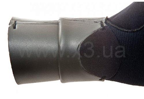 Двойная обтюрация исключает попадания воды в рукавицы и под костюм. Нижний обтюратор заправляется под костюм, а верхний поверх костюма. Неопрен полностью по швам проклеен и материал прошит двойным швом. Рукавицы анатомические, что позволяет долгое время неподвижно держать ружье.