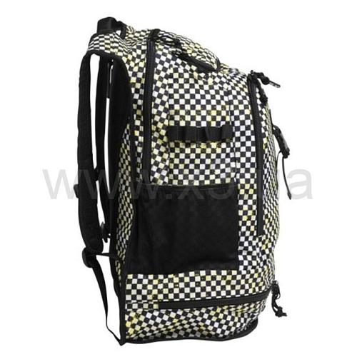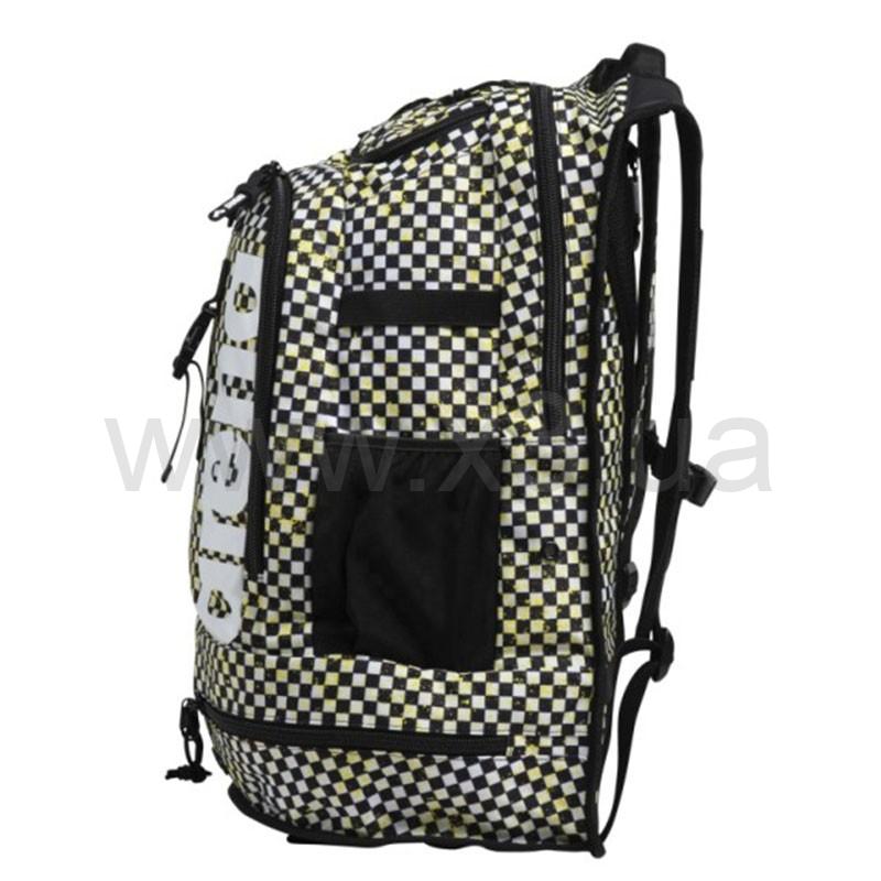 Укрепленное дно. Встроенный карабин позволяет повесить рюкзак и использовать его вместо шкафа для хранения вещей. Специальное отделение в днище рюкзака для сланцев. Одно отделение на молнии спереди. Большое отделение сзади предназначено для крупного тренировочного оборудования. Два боковых сетчатых кармана для емкости с водой. Сетчатые вставки предназначены для вентиляции. Простая в обращении система ремней. Сетчатые спинка и лямки с набивкой обеспечивают комфорт при носке рюкзака.