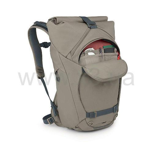 Osprey Metron Roll Top Pack - городской велосипедный рюкзак со съемным чехлом для шлема, отделением для ноутбука, дождевиком и светоотражающим принтом. Эта модель оснащена удобной системой закрытия роллтоп, что позволяет регулировать объем - от 22 л (когда полностью свернут) до 26 л (не свернут).