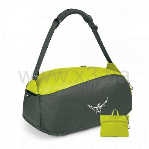 Сумка Osprey Ultralight Stuff Duffel из ультралегкого материала в стиле "дюфель" для спорта и путешествий. Компактно складывается в собственный карман. Большой объем в 30 л позволяет иметь запасной вариант на случай покупки большого количества сувениров. Боковые карманы для мелочей и документов. Мягкая вставка на ручке для переноски для комфорта при больших нагрузках.