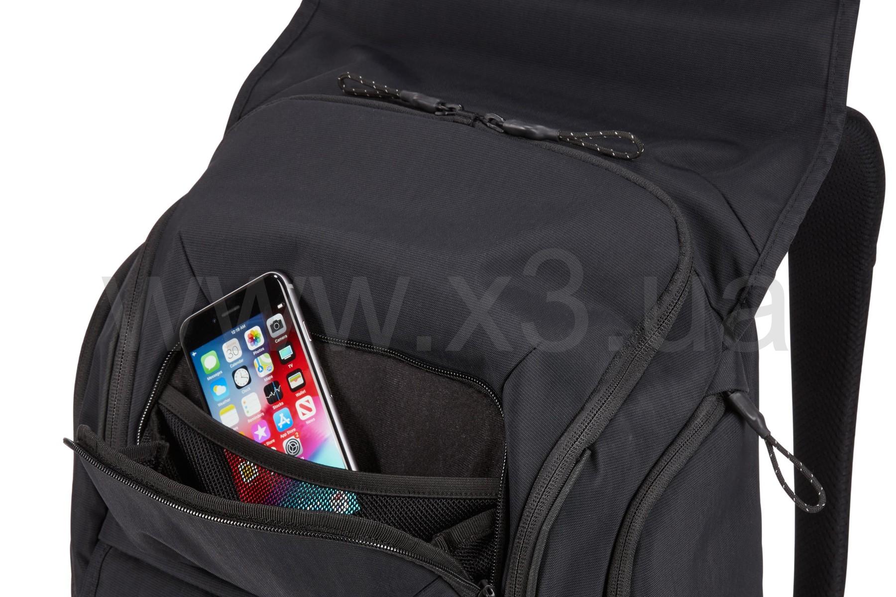 Благодаря карману на молнии с верхней загрузкой, обеспечивающему быстрый доступ к вещам, переднему карману с защитным клапаном на магнитной застежке, а также потайному карману на задней панели всегда найдется дополнительное место для нужных вещей