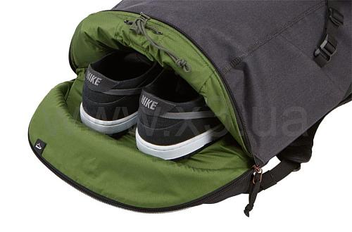 Храните обувь в отдельном растягивающемся кармане, расположенном с внешней стороны рюкзака. Если он не используется, его можно стянуть, чтобы освободить место