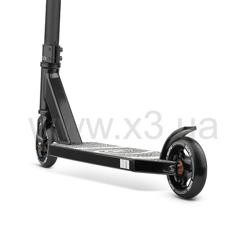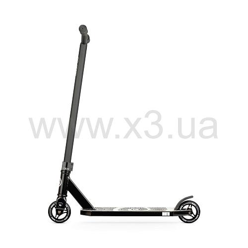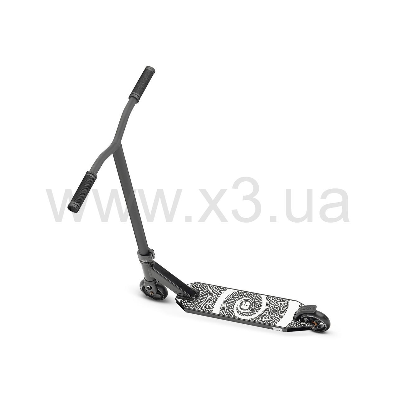 Y-образный руль изготовлен из хром-молибденового сплава, благодаря чему отличается особой прочностью. Ширина руля составляет 54 см - габариты удобны для выполнения флип трюков с вращением. Износостойкие мягкие грипсы не позволяют ладоням соскользнуть с ручек. Система компрессии IHC с хомутом на 2-х болтах надежно фиксирует руль в стальной вилке с оффсетом 10 мм. Самокат оснащен рулевой колонкой на открытых подшипниках - при необходимости их легко снять и заменить.