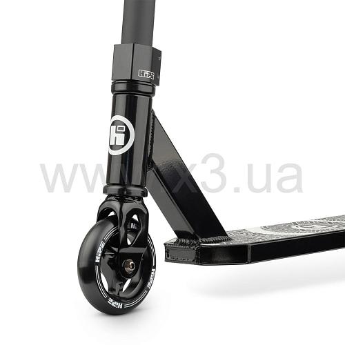 Самокат Hipe H1 имеет фиксированную конструкцию - высота руля не регулируется, самокат не складывается. Прочная алюминиевая дека длиной 340 мм и шириной 110 мм покрыта рельефной шкуркой, которая делает ее максимально безопасной - ноги не соскользнут во время катания. Благодаря этому достигается максимальная жесткость и надежность, необходимая для выполнения трюков и прыжков. Самокат выдерживает нагрузку до 100 кг.