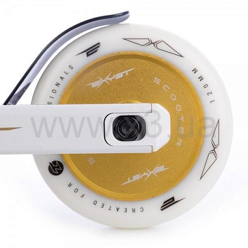 На самокат Tempish EXYST установлены колеса с алюминиевой ступицей, диаметр колес 120 мм, жесткость 88A - высококачественные скоростные колеса с хорошим сцеплением с любой поверхностью и эффектом амортизации. Колеса оснащены высокоточными подшипниками ABEC 9 chrome speed со съемными резиновыми пыльниками для быстрой очистки.