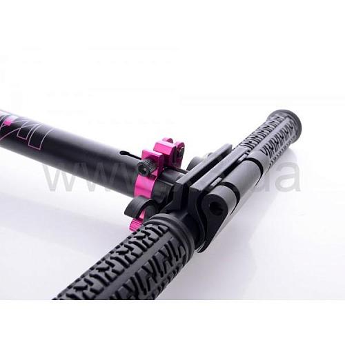 Ручки самоката Nixin 145 AL надежно закреплены на рулевом стержни с помощью большого зажима, поглощает вибрацию. Это делает рулевую часть максимально надежной и повышает комфорт катания.