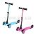 Самокат выполнен в насыщенном голубом цвете с черными вставками на руле и колесах.