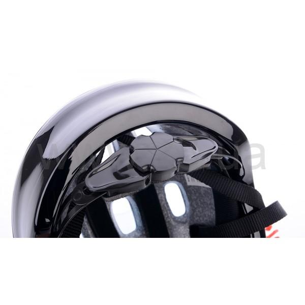 С помощью регулируемого пластикового ремешка в затылочной части шлем хорошо подгоняется по размеру. Классический 3-х точечный регулируемый ремень под подбородком хорошо фиксирует шлем во время катания.