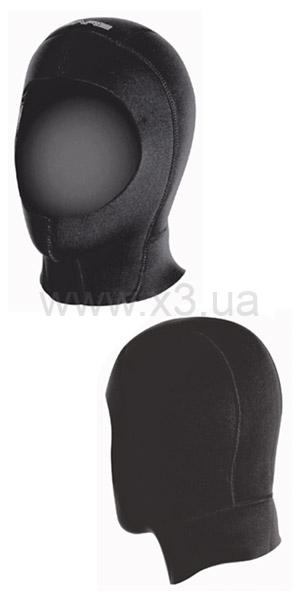 Шлем выполнен из неопрена толщиной 7 мм, лицевой обтюратор 5 мм толщины. Шлем разработан так, чтобы работать с шейной манжетой сухого костюма, предотвращая попадание воды внутрь.