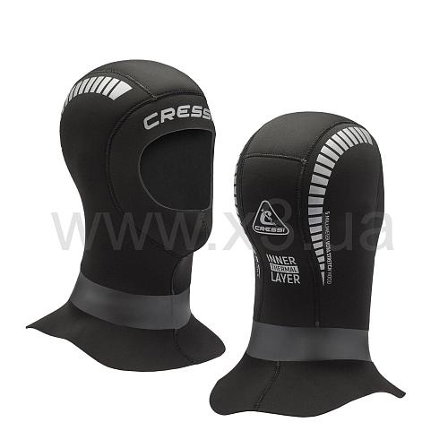 Шолом 5 мм від Cressi, з великим круглим вирізом. Заправляється під гідрокостюм, забезпечуючи відмінну водонепроникність.