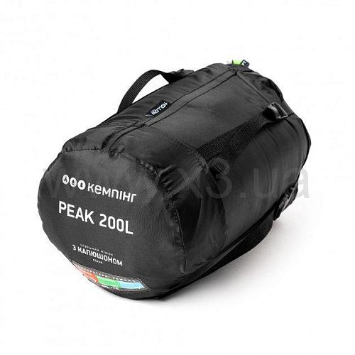 Мешок спальный Кемпинг Peak 200 Л с капюшоном утеплен Hollow Fibre, что придает изделию непревзойденную теплоизоляцию, также стоит обратить внимание на наличие капюшона, который защищает человека от сильного ветра, осадков и других капризов погоды.