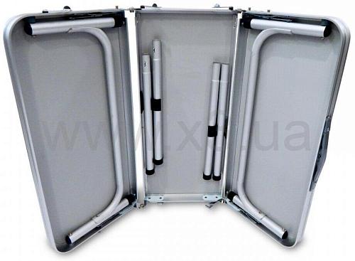 Очень компактный, стол который складывается в 2 раза и занимает очень мало места, станет для вас незаменимым помощником во время отдыха и обеспечит комфортабельный отдых. Столешница - ДВП с ПВХ покрытием. Складывается пополам, для большей компактности и удобности транспортирования. Есть удобная ручка для переноса.