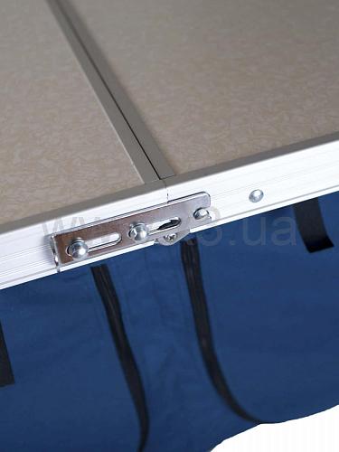 Стол простой в раскладывании и сборке. В собранном виде он представляет собой чемодан с ручкой, а также комплектуется чехлом, для большей защиты и удобной транспортировке.
