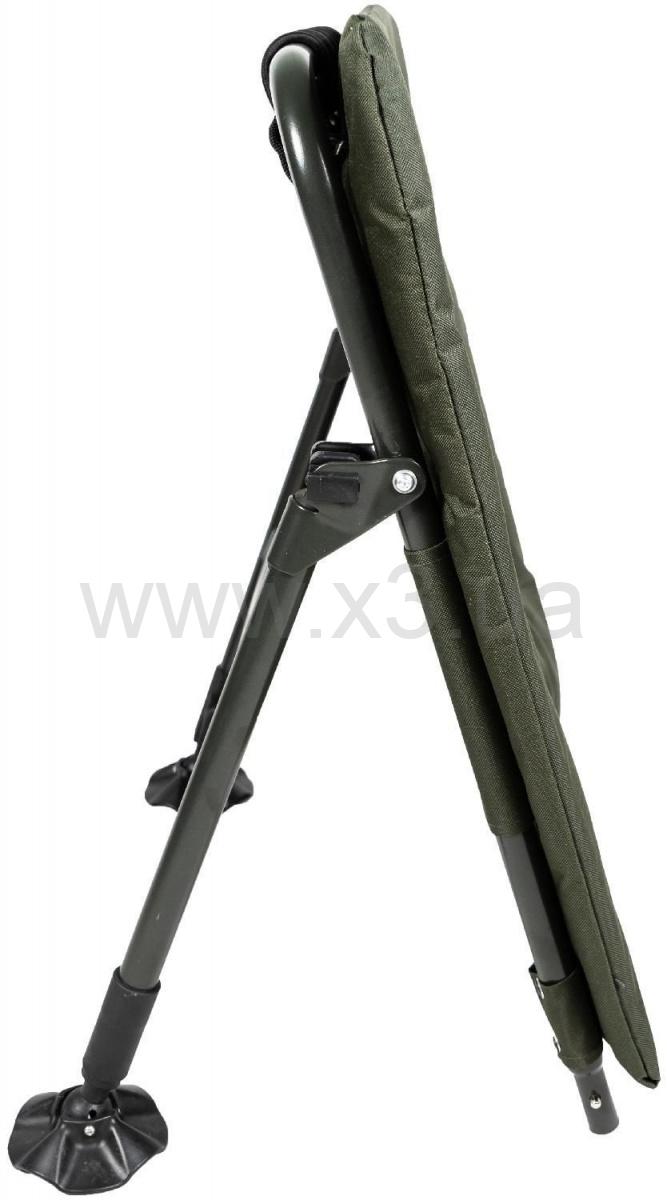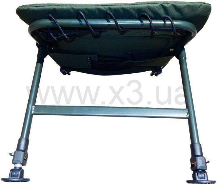 Благодаря выдвижным ножкам, кресло можно отрегулировать на нужную высоту и под любым углом, чтобы на любой неровной поверхности располагалось ровно. Ножки устойчивы и не погружаются в грунт. Стальная конструкция мощная и рассчитана на большой вес.