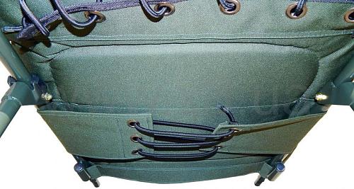 Приставка под ноги снизу усилена тканевой вставкой соединенной толстым резиновым шнуром, которым при необходимости можно регулировать натяжение и это в свою очередь защитит от провисания ткани со временем.