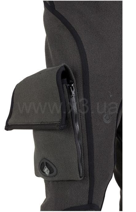 Первый слой (DryCORE) - это сухой костюм с плотно прилегающей оболочкой, включающий уплотнения, сухую застежку-молнию, воздухозаборные и выпускные клапаны для создания водонепроницаемого барьера. Второй слой «поверх костюма», выполненный из прочных стрейч-тканей, прикреплен к DryCORE на запястьях, лодыжках и сухой молнии, чтобы сформировать форму обтекания в сухом костюме.